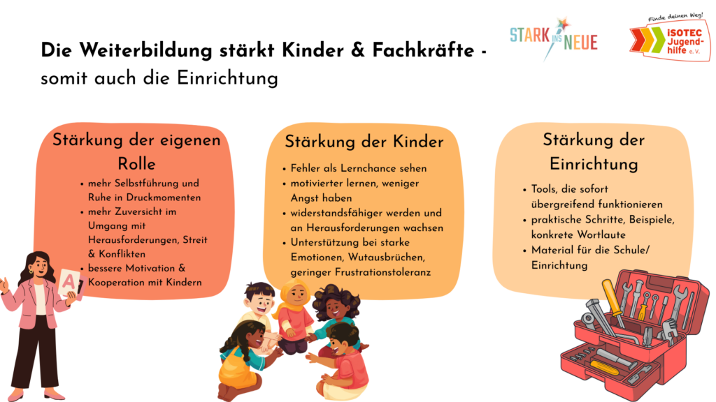 Die Weiterbildung ist zu 100 % gefördert und richtet sich an alle, die nicht nur Wissen vermitteln, sondern Kinder in ihrer Entwicklung wirklich stärken wollen.